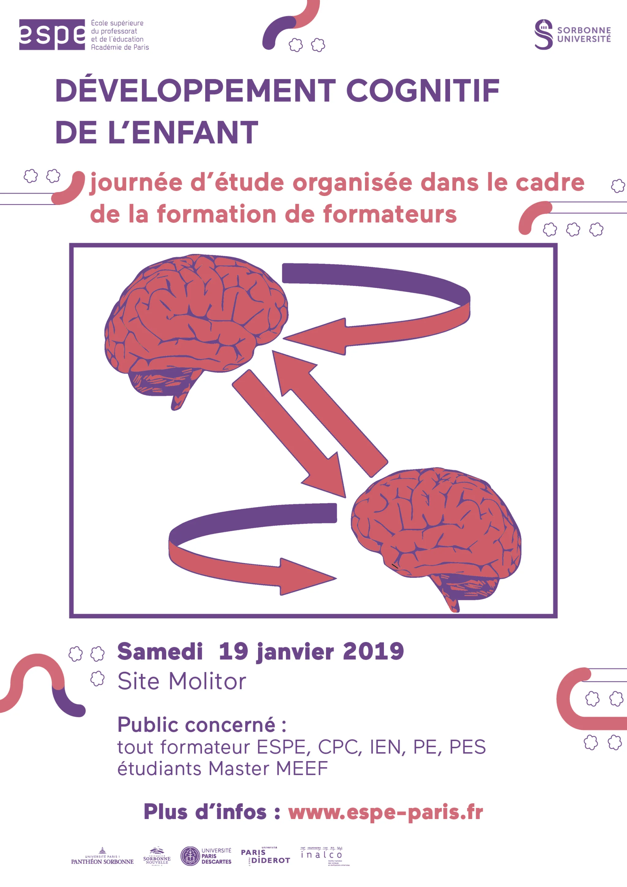 La journée d'étude autour du développement cognitif de l'enfant aura lieu samedi 19 janvier 2019 sur notre site Molitor. Elle est organisée dans le cadre de la formation de formateurs.
