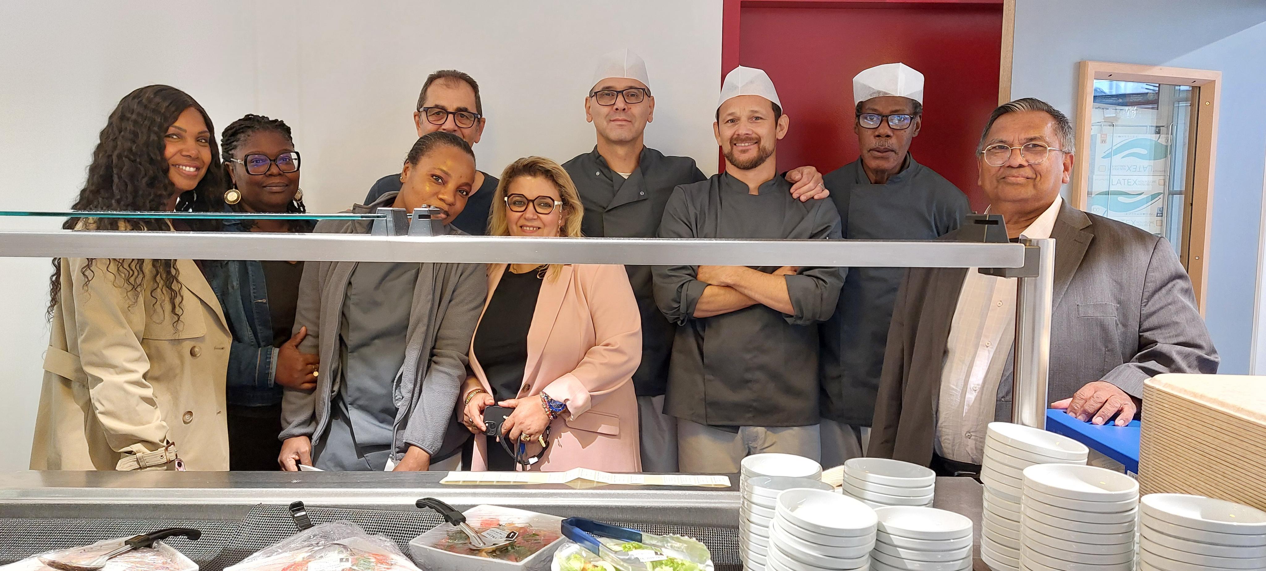 Groupée autour du chef Jean-Claude Belazzoug, l'équipe des personnels de l'INSPÉ engagée pour la réouverture du service de restauration à Batignolles.